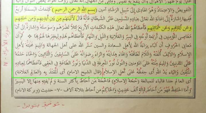 Kalimat بسم الله الرحمن الرحيم itu ada empat, maka di dalam kalimat Basmalah terdapat isyarat kepada Pertolongan Allah ta'ala bagi para hamba-Nya orang-orang Islam untuk menghadapi syetan.